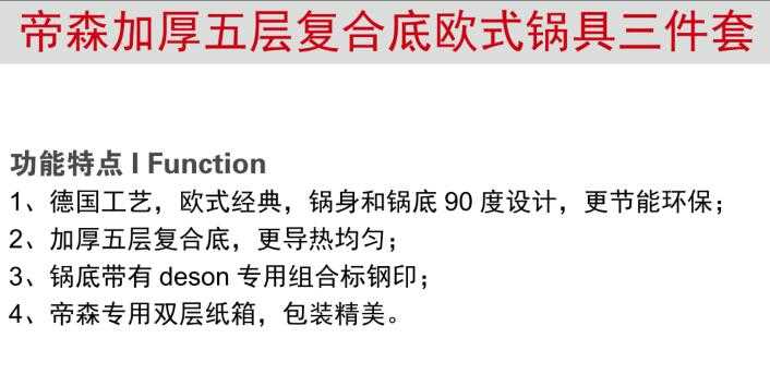 帝森加厚五層復(fù)合底歐式鍋具三件套